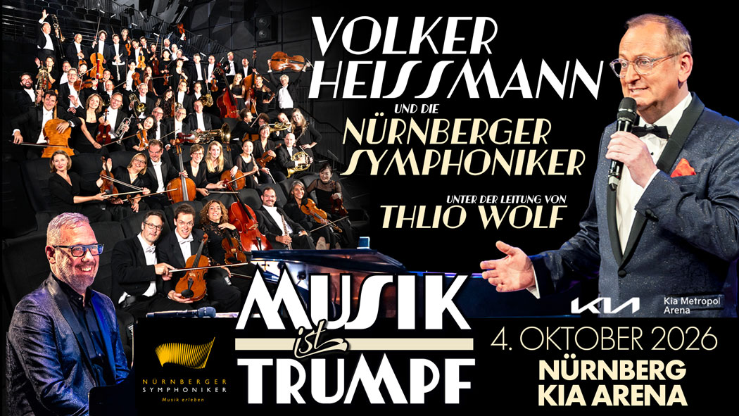 Zusammen mit den Nürnberger Symphonikern – dann unter der Leitung von Thilo Wolf – präsentiert Heißmann in der KIA ARENA einen musikalischen Abend der Güteklasse eins. „Ich freue mich auf meine Konzerte mit den wunderbaren Symphonikern unter der Leitung von Maestro Thilo Wolf“, ist Heißmann schon jetzt voller Vorfreude. Auch das Orchester stimmt sich bereits ein, soll es doch ein weiteres Highlight im 80-jährigen Jubiläumjahr der Nürnberger Symphoniker werden.
