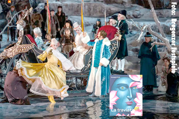 Regisseur Damiano Michieletto verlegt Verdis Oper in Bregenz in die glanzvolle Welt der Pariser Gesellschaft – zwischen Jazzklubs und dekadenten Abendgesellschaften. Die Statist:innen wirken in zwei Szenen mit, in denen auch die Tänzer:innen Teil des Bühnengeschehens sind: „Die erste entführt das Publikum in die unbeschwerte Leichtigkeit einer sommerlichen Partygesellschaft, die zweite in einen eleganten Varieté-Abend der 1920er-Jahre“, so Produktionsleiter Lukas Fricker. „Die Statist:innen werden Kellner, die Blaskapelle und die Festgesellschaft darstellen.“ (Quelle: Bregenzer Festspiele)
